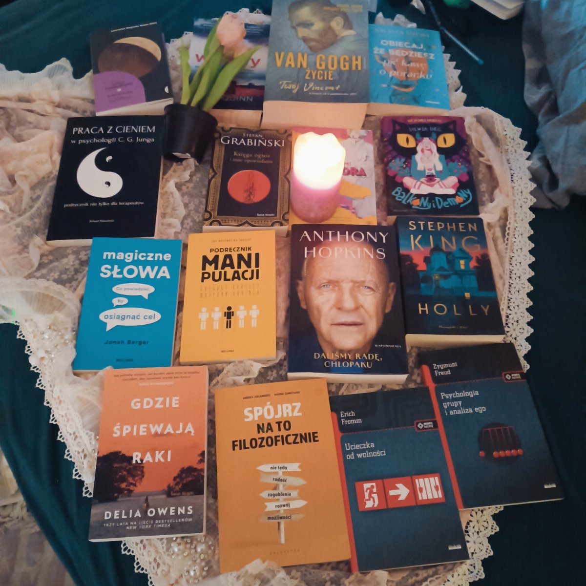 Część książek do przeczytania. Więcej by się nie zmieściło w kadrze. Mam też sporo e-booków. Lubię czytać kilka książek na raz. Miałam okres gdzie nie czytałam wcale, bo miałam depresję lekką, ale koncentracji wgl nie było na książki. Teraz powoli zaczynam czytać. Powróciłam do dawnych pasji. Bardzo mnie to cieszy. Już nie mam labilnego nastroju w ciągu dnia. Jest on na stałym poziomie. Wieczorem czuję się dobrze. Wcześniej po południu już miałam zjazd. Codziennie po ileś razy miałam zmiany nastroju. To jest okropne. Stan mieszany. Teraz jest w porządku. Oby nadal było stabilnie. -