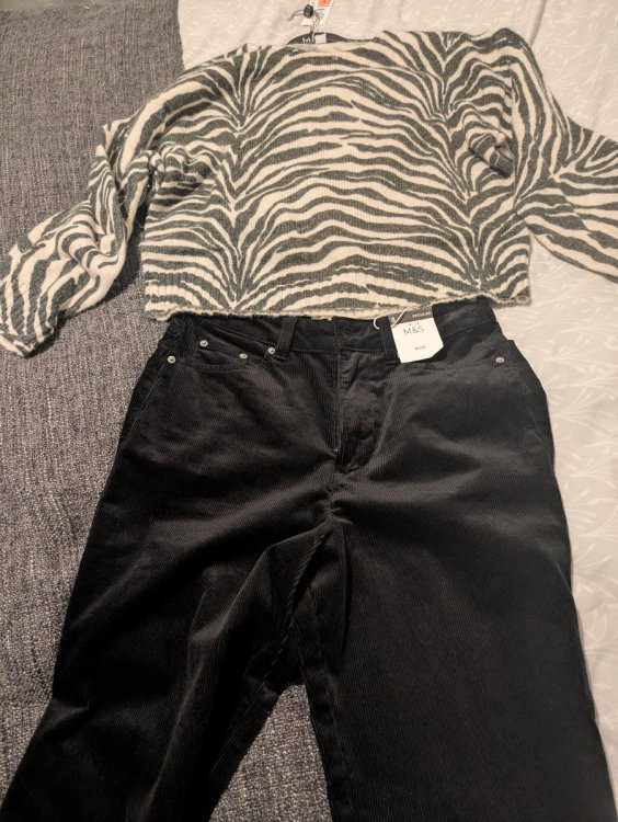 Kupiłam sobie dzisiaj spodnie i jakiś bluzko-sweterek. Plus bieliznę, ale nie będę pokazywać a, i koszulkę zwykłą czarną z długim rękawem.
