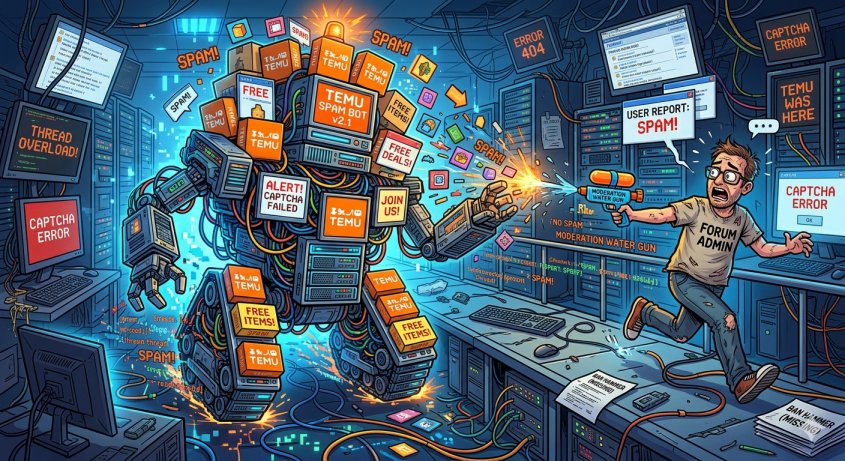 1. Wydarzenie: Bitwa o Kafeterię. 2. Data: 20-22.03.2026 r. 3. Strony konfliktu: a). Poczet administratorów forum Kafeteria b). Spambot Temu 4. Rezultat starcia: Całkowita przegrana administracji forum Kafeteria 5. Przebieg bitwy: Spambot atakuje forum od wielu tygodni -> administracja forum wykonuje bardzo spóźnioną akcję odłączenia JS by wyłączyć złośliwemu oprogramowaniu możliwość rejestracji kont -> w tym samym czasie, gdy forum nie funkcjonuje loguje się cały forumowy poczet administratorów Funcjonalność JavaScript po około 1,5 dnia zostaje przywrócona -> Spambot wrzuca na serwis tematy dokładnie jak wrzucał, nic nie zostało rozwiązane. 6. Wnioski końcowe: - Brak realnego pomysłu na poradzenie sobie z atakiem. - Prowizoryczność w podejmowaniu decyzji - Zupełna niemoc sytuacyjna i brak merytorycznego przygotowania sekcji administratorów.