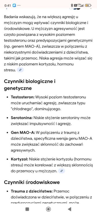 Przykry jesteś. Czytałam i oglądałam filmy na ten temat. A zresztą... To co w moim doświadczeniu jest już nieważne? Potrafisz pisać normalnie bez pasywnej agresji? Testosteron. Pomysł i zastanów się nad tym. Nie rób ze mnie debila, bo nim nie jestem. I nie życzę sobie tej formy pisania do mnie. Już dawno zauważylam że szukasz zaczepki na forum.