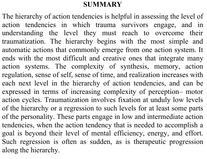 Też myślę że u mnie można na to patrzeć w kategoriach PTSD lub CPTSD. Podejście dysocjacyjne to po prostu trochę inne podejście do tego samego zjawiska. Co do mózgu gadziego – musiałbym sobie dokładnie przypomnieć, gdzie przebiega podział (czy lęk to odczucie gadzie, czy już emocja ssacza?), ale na pewno wyższe struktury mogą hamować działanie niższych. Była taka teoria… https://www.acusmed.pl/blog/teoria-poliwagalna/ No i jest też pewna hierarchia – gdy „wyższe” mechanizmy (w „The Haunted Self” były nazwane „action tendencies”) nie mogą zadziałać, to działają te „niższe”, bardziej pierwotne. Jak chcesz to ci wyślę ebooka, zobacz rozdział 9 („The Hierarchy of Action Tendencies”). Tu podsumowanie: