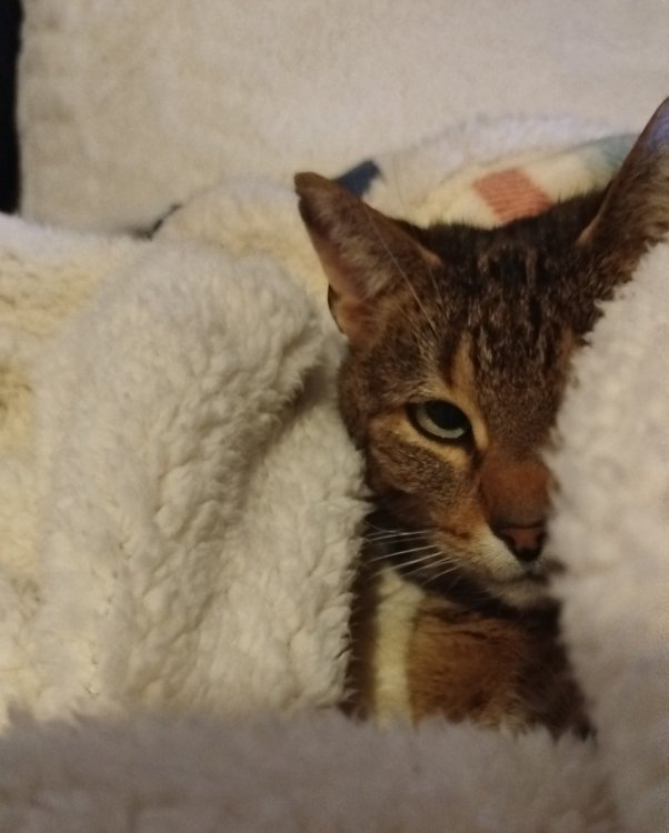 Księżniczka niezadowolona, że sługa raczył ją przebudzić z całodziennej drzemki. Koty mają ciężkie życie.